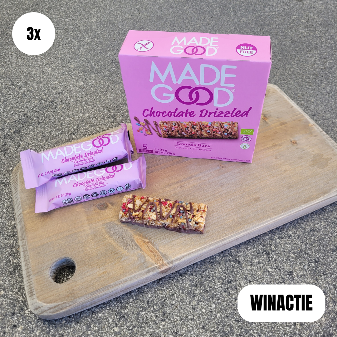Maak 3x kans op 1 maandvoorraad aan MadeGood granola bars met de smaak birthday cake.